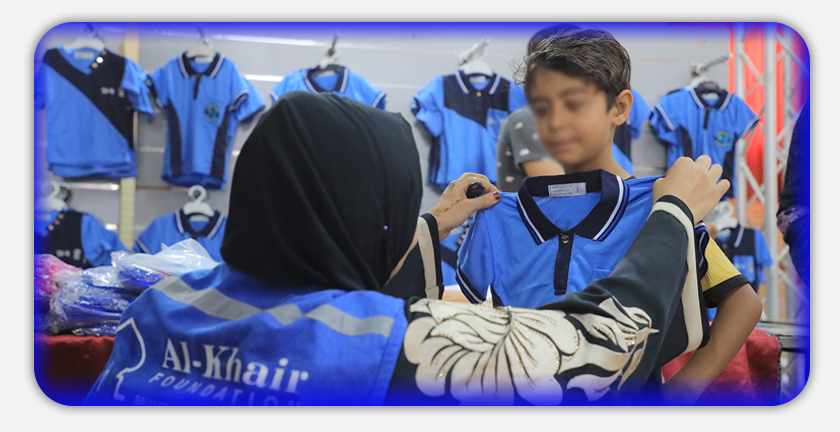 ووزعت الخير الكسوة المدرسية على (3000) طالب وطالبة من المرحلة الابتدائية والإعدادية من الأسر الأشد فقراً واحتياجًا في محافظات القطاع الخمسة، وشمل الزي المدرسي، البنطلون، والقميص، والمريول والحقيبة.