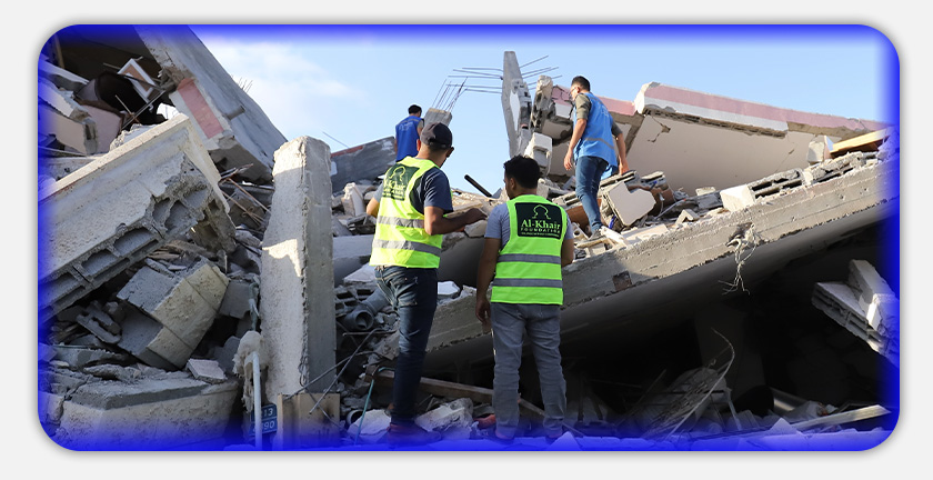 بعد بدء العدوان على قطاع غزة، بدأت مؤسسة الخير تدخلاً إنسانياً عاجلاً، لإغاثة الأسر المتضررة من العدوان ودعم صمود وصبر السكان في القطاع المحاصر.