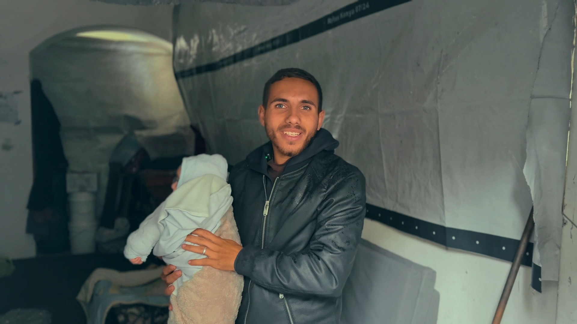 During the war of genocide on Gaza, Khaled lost his job, his home was destroyed, and he lost two motorcycles that represented the capital of his delivery project. He was forced to flee and live in Palestine Stadium.