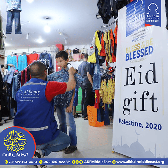 ضمن خطته الرمضانية لدعم الأسر الفقيرة والمستورة في قطاع غزة، قدم فريق مؤسسة الخير كسوة العيد لآلاف الأطفال من الأسر الأشد فقراً في القطاع قبيل عيد الفطر المبارك.