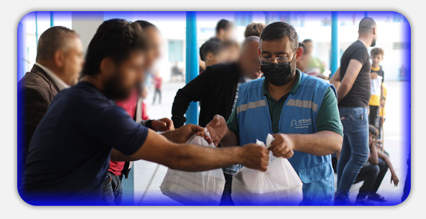 و وزعت الخير خلال العدوان الاسرائيلي مواد التعقيم والوقاية اللازمة للحد من انتشار فايروس كورونا على 1500 عائلة من العائلات التي نزحت بسبب القصف الشديد، جزء نزح عند أقارب له، والجزء الأكبر إلى مراكز الإيواء.