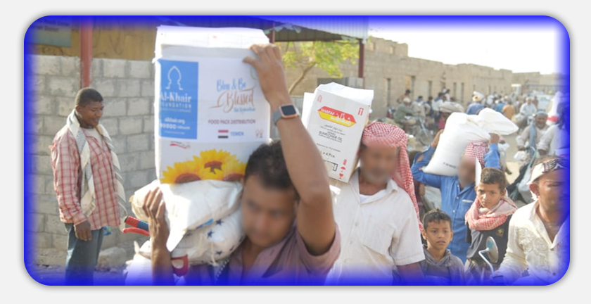 ومع بداية أول أيام شهر رمضان بدأت فرق الخير في اليمن بتجهيز وتوزيع السلال الغذائية على أسر النازحين اليمنيين الذين يعانون من أسوأ كارثة إنسانية دفعت بنحو 16 مليون يمني من أصل 30 مليون نسمة نحو مجاعة محتمة مع دخول النزاع في اليمن عامه السابع.