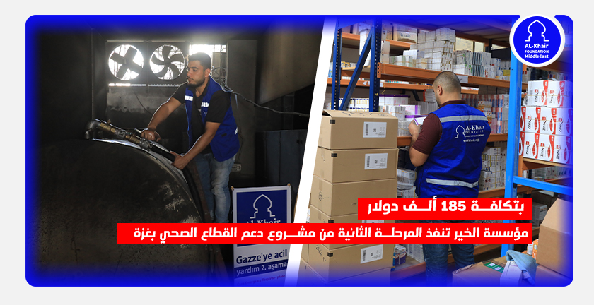نفذت مؤسسة الخير- مكتب الشرق الأوسط المرحلة الثانية من مشروع دعم القطاع الصحي في قطاع غزة بتكلفة تصل إلى 185 ألف دولار.