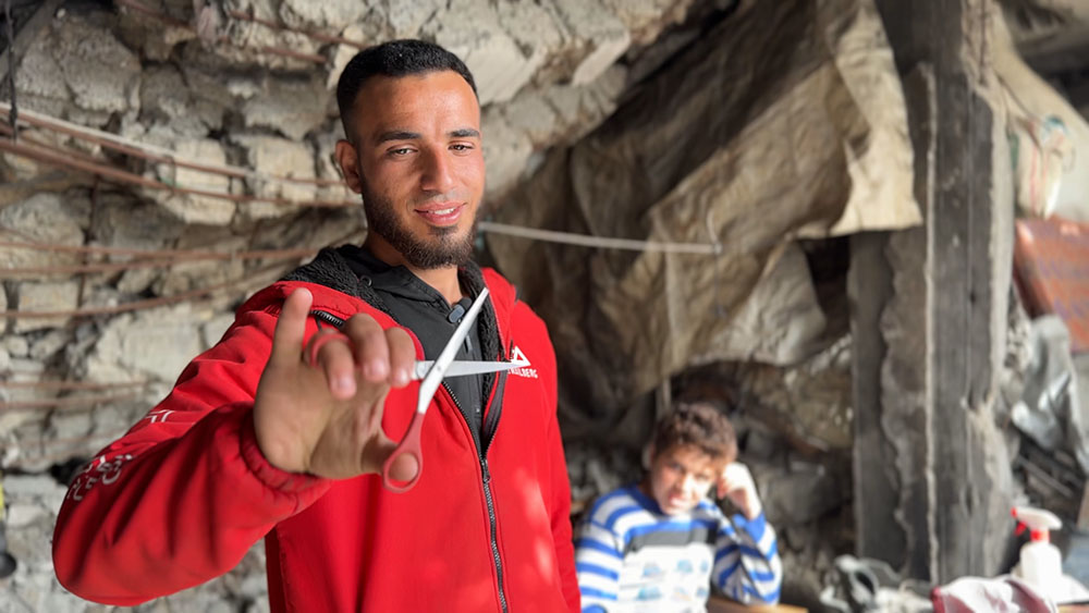 لكن الحرب سلبت منه المنزل والصالون معًا، لتتحول فرحته بافتتاح مشروعه إلى خسارة مفاجئة.